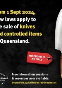 Resources for business explaining the 2024 QLD laws for the sale of knives and other controlled items. Return to main page >