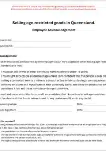 Sample staff acknowledgement – 2024 QLD Knife and Controlled Items